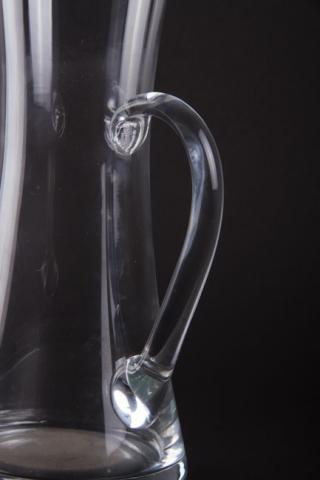 Objeto de uso doméstico. Contenedor de forma cilíndrica elaborado en vidrio transparente. Base plana. El cuerpo se adelgaza hacia un cuello corto evertido de boca restringida. En el centro, cilindro con inscripciones y escudo de Chile en sobre relieve.