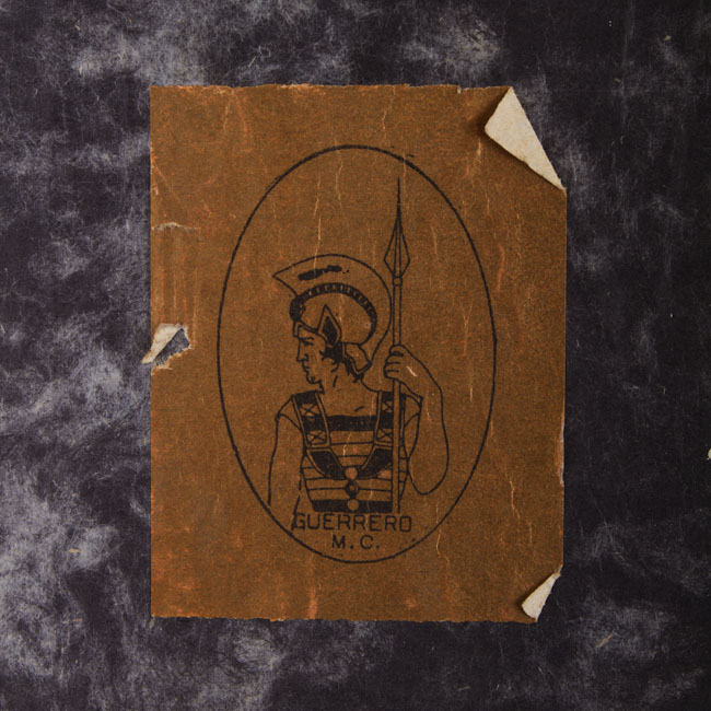 Objeto utilitario de forma rectangular elaborado en cartón forrado en papel que simula mármol café. Canto y esquinas negras. En su interior bisagra metálica.