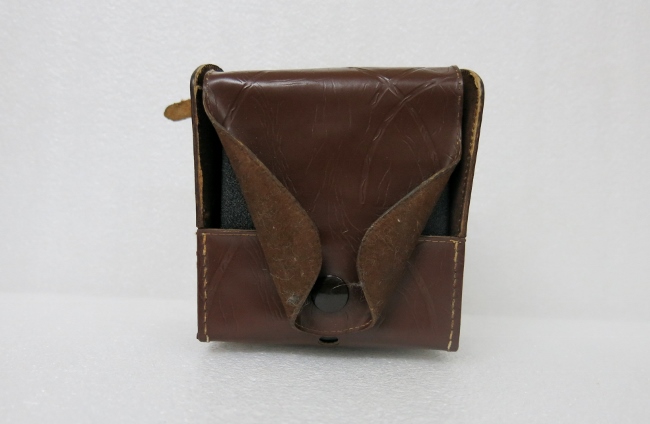 Junto con un estuche de cuero marrón con un broche en la parte frontal.