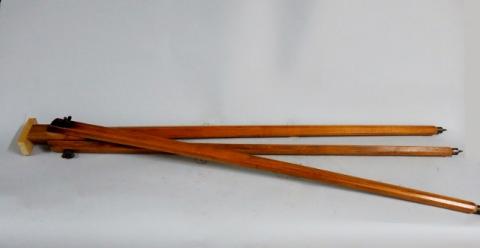 Equipo fotográfico, compuesto por diez partes. Tres cámaras fotográficas de metal y de formato rectangular; tres trípodes de madera; un juguete que representa un caballo; un manto y sombrero; junto con un telón de lona.