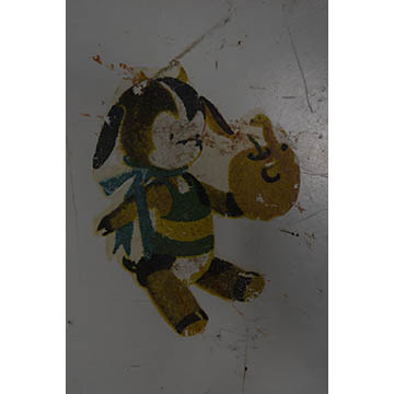 Contenedor de metal pintado, se compone por una estructura rectangular al exterior pintado blanco y el interior negro. Al costado derecho posee una manilla giratoria de madera. En la parte frontal posee una calcomania de colores.