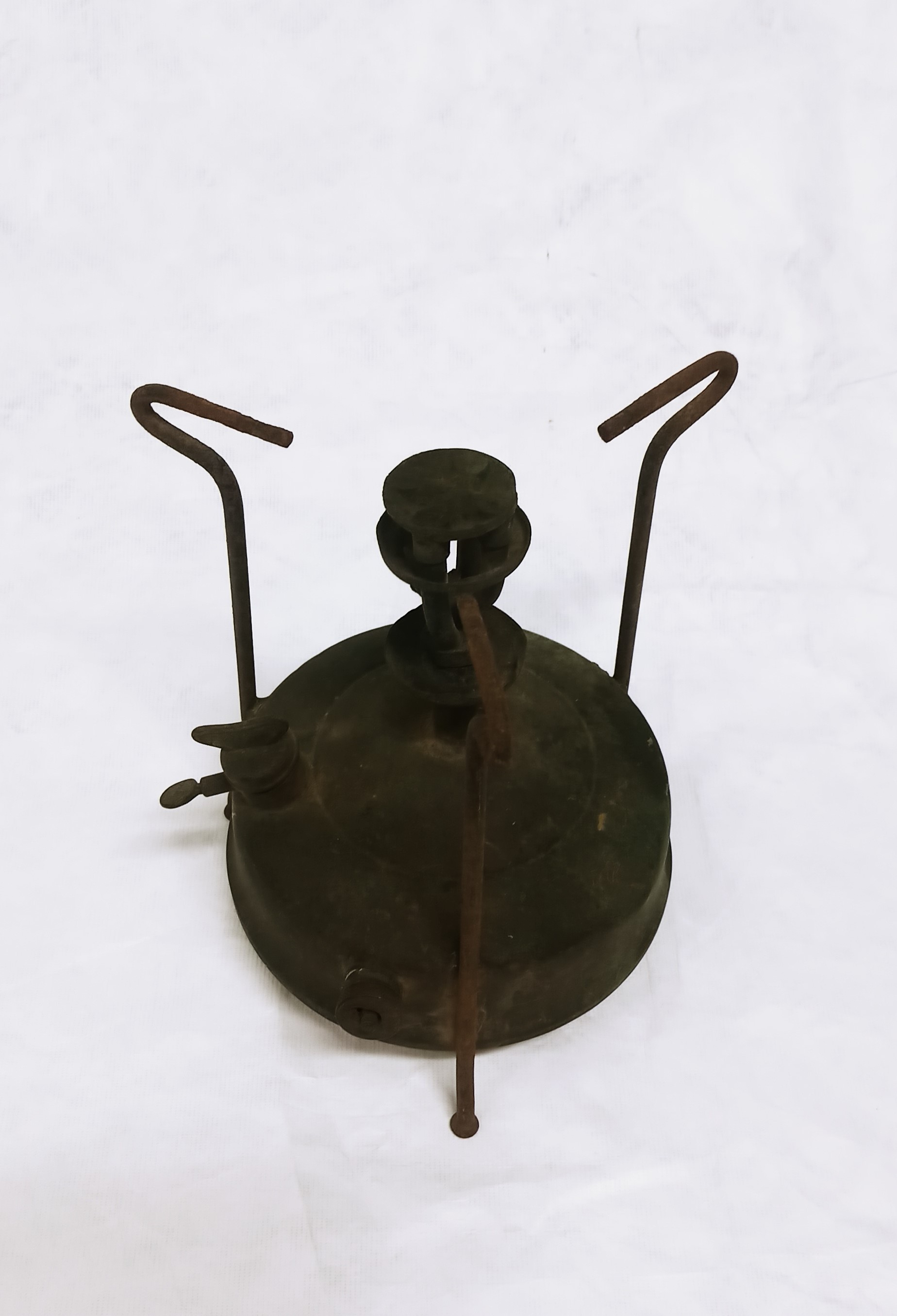 Objeto de uso portátil. Es un dispositivo pirotécnico portátil usado para generar una llama. Es de latón negro. Tiene un tambor de forma redonda y horizontal ubicado en la parte baja. En la zona central, un tubo vertical.