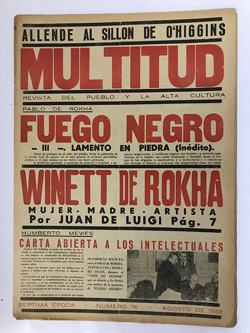 "Multitud fue una revista político-cultural que se publicó con intermitencias entre 1939 y 1963 (Nómez, Naín. "La poesía de Pablo de Rokha: vanguardista, épica y popular". Mapocho. Número 83, primer semestre de 2018, p. 26). Gestionada por su director, Pablo de Rokha (1894-1968), y Winétt de Rokha (1892-1951), fue un medio en el que se discutió la realidad nacional e internacional, se promovió la lucha social de los trabajadores, se denunció a la burguesía de la época y fue un espacio de divulgación cultural. En sus páginas aparecieron artículos sobre "urbanismo, poemas, críticas literarias, ensayos políticos, avisos comerciales, sesiones parlamentarias, etc. Se trata de un sistema totalizador en donde el fenómeno singular se disuelve en una cosmología en perpetua transformación" (Nómez, Naín. "Presentación". En De Rokha, Pablo. Epopeya del fuego. Santiago: Universidad de Santiago, 1995, p. 29).
