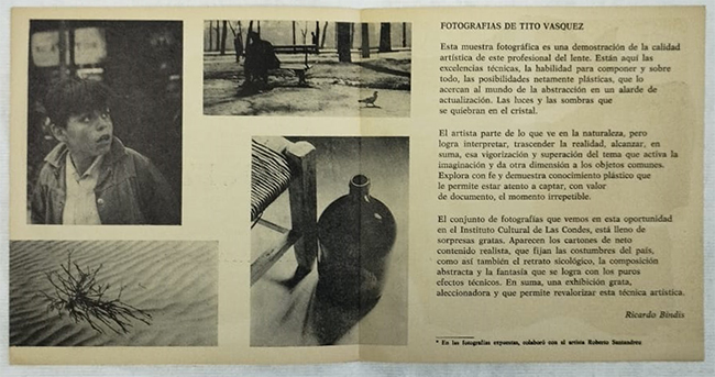 Catálogo Fotografías Tito Vásquez. Instituto Cultural de las Condes