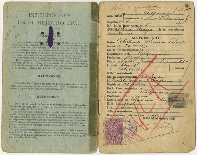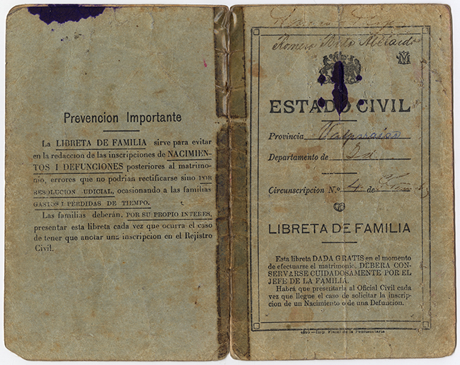 Libreta de familia. Estela Rojas y Abelardo Romero