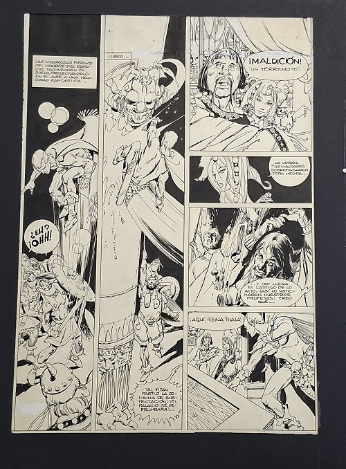 Obra visual de formato rectangular y disposición vertical. Dibujo monocromo. Está compuesto por seis viñetas protagonizadas por varias figuras masculinas.