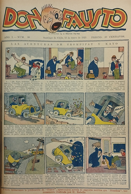 "Durante las décadas de 1920 y 1930, la historieta se desarrolló principalmente en publicaciones infantiles, entre las que destacaron El Peneca (1908-1960), Chicos i grandes (1908-1909), El Pibe (1923-1931), Don Fausto (1924-1964), El Cabrito (1941-1948), Aladino (1949-1951), Simbad (1949-1956) o Álbum Mickey (1937-1938). En estas revistas participaron dibujantes como Raúl Figueroa (Chao) (1886-1948) o Jorge Christie (1916-1954). Este último, en 1938, comenzó a publicar en El Diario Ilustrado (1902-1970) las aventuras de Chu Man-Fú, la primera tira cómica de frecuencia diaria chilena."