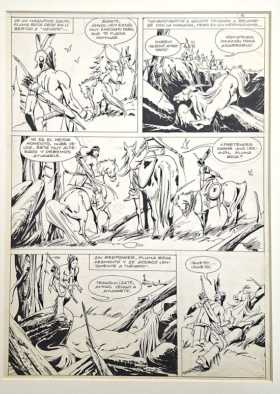 Obra visual de formato rectangular y disposición vertical. Dibujo monocromo. Está compuesto por cinco viñetas protagonizadas por varias figuras masculinas.