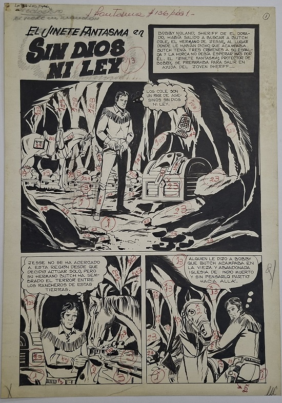 Este dibujo fue publicado en la revista El Jinete Fantasma, de la editorial Zig-Zag, N°136, en la página 1.