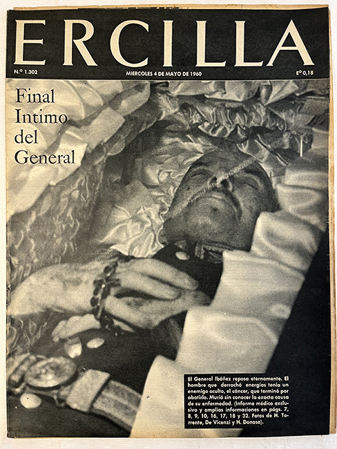 Publicación periódica. Papel impreso en disposición horizontal. En tapa texto impreso en tinta negra y blanca en parte superior, cubre el plano fotografía impresa en blanco y negro (Ex Presidente Carlos Ibañez del Campo "reposa" en el feretro). sobre ella texto en tinta negra. En su interior textos impresos en tinta blanca y negra con diferentes informaciones (noticias, reportajes, crónicas, anuncios publicitarios, etc.). Incluye múltiples fotografias, ilustraciones y tiras cómicas impresa en blanco y negro.