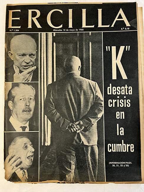 Publicación periódica. Papel impreso en disposición horizontal. En tapa texto impreso en tinta negra y blanca en parte superior, cubre el plano fotografía impresa en blanco y negro (Imagen de políticos internacionales como Nikita Kruschev). sobre ella texto en tinta negra. En su interior textos impresos en tinta blanca y negra con diferentes informaciones (noticias, reportajes, crónicas, anuncios publicitarios, etc.). Incluye múltiples fotografias, ilustraciones y tiras cómicas impresa en blanco y negro.