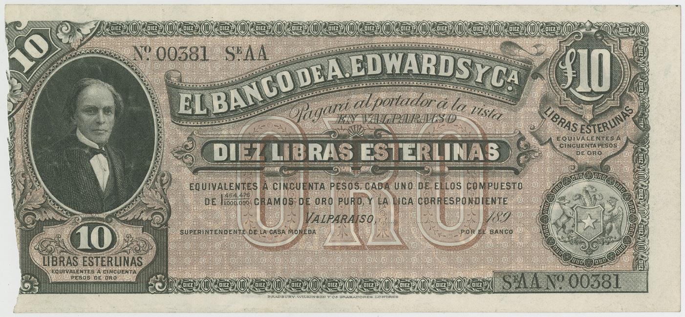 Objeto para realizar transacciones económicas, compuesto de papel impreso con tinta de color verde y café en el anverso, y en el reverso solo de color café.