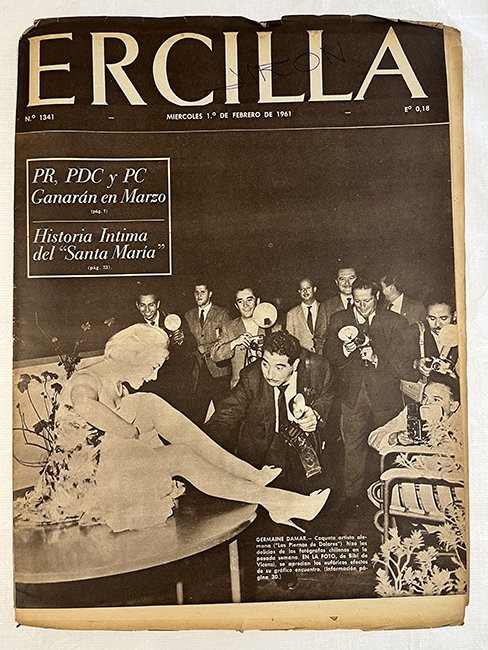 Publicación periódica. Papel impreso en disposición horizontal. En tapa texto impreso en tinta negra y blanca en parte superior, cubre el plano fotografía impresa en blanco y negro (artista alemana Germaine Damar). En su interior, textos impresos en tinta blanca y negra con diferentes informaciones (noticias, reportajes, crónicas, anuncios publicitarios, etc.). Incluye múltiples fotografias, ilustraciones y tiras cómicas impresa en blanco y negro.
