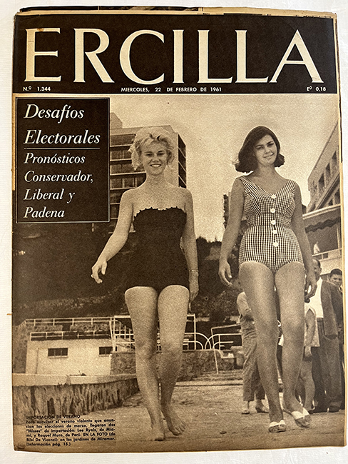 Publicación periódica. Papel impreso en disposición horizontal. En tapa texto impreso en tinta negra y blanca en parte superior, cubre el plano fotografía impresa en blanco y negro (dos jovenes mujeres modelos desfilan). En su interior, textos impresos en tinta blanca y negra con diferentes informaciones (noticias, reportajes, crónicas, anuncios publicitarios, etc.). Incluye múltiples fotografias, ilustraciones y tiras cómicas impresa en blanco y negro.