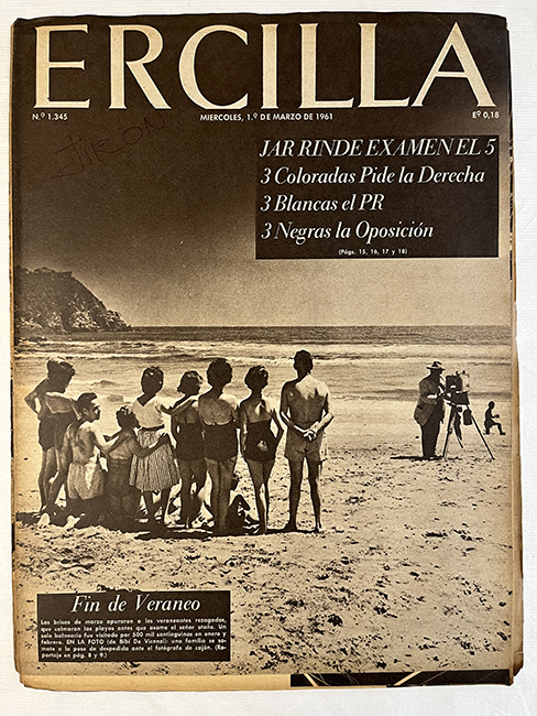 Publicación periódica. Papel impreso en disposición horizontal. En tapa texto impreso en tinta negra y blanca en parte superior, cubre el plano fotografía impresa en blanco y negro (veraneantes posan para fotografia en playa). En su interior, textos impresos en tinta blanca y negra con diferentes informaciones (noticias, reportajes, crónicas, anuncios publicitarios, etc.). Incluye múltiples fotografias, ilustraciones y tiras cómicas impresa en blanco y negro.