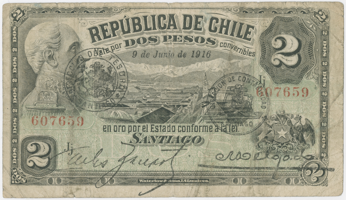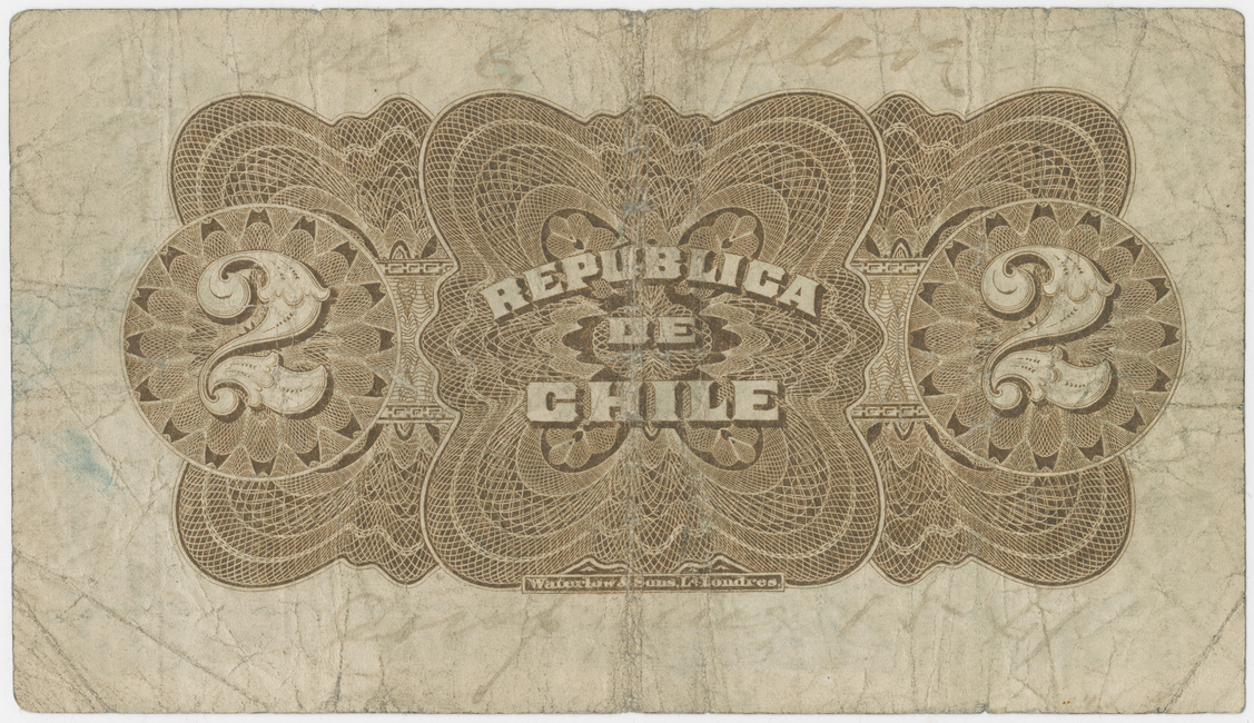 Objeto para realizar transacciones económicas, compuesto de papel impreso, en su anverso, con tinta de color verde. En su reverso presenta impresiones de color café.