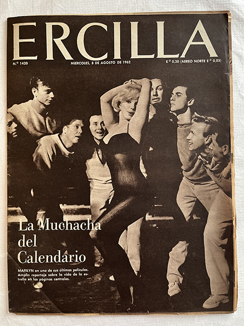 Publicación periódica. Papel impreso en disposición horizontal. En tapa texto impreso en tinta negra y blanca en parte superior, cubre el plano fotografía impresa en blanco y negro (Marilyn Monroe). En su interior, textos impresos en tinta blanca y negra con diferentes informaciones (noticias, reportajes, crónicas, anuncios publicitarios, etc.). Incluye múltiples fotografias, ilustraciones y tiras cómicas impresa en blanco y negro.