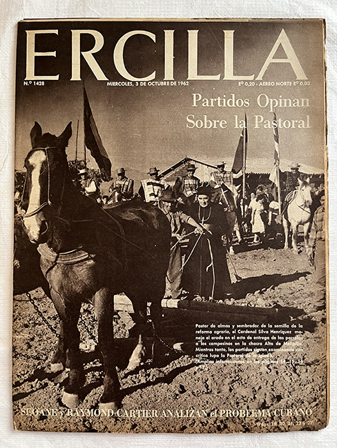 Publicación periódica. Papel impreso en disposición horizontal. En tapa texto impreso en tinta negra y blanca en parte superior, cubre el plano fotografía impresa en blanco y negro (Cardenal Silva Henríquez maneja arado). En su interior, textos impresos en tinta blanca y negra con diferentes informaciones (noticias, reportajes, crónicas, anuncios publicitarios, etc.). Incluye múltiples fotografias, ilustraciones y tiras cómicas impresa en blanco y negro.