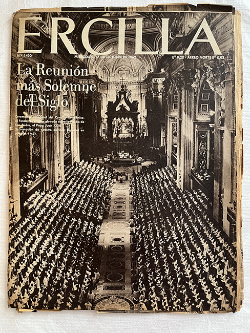 Publicación periódica. Papel impreso en disposición horizontal. En tapa texto impreso en tinta negra y blanca en parte superior, cubre el plano fotografía impresa en blanco y negro (ceremonia inaugural del Concilio Ecuménico en el Vaticano). En su interior, textos impresos en tinta blanca y negra con diferentes informaciones (noticias, reportajes, crónicas, anuncios publicitarios, etc.). Incluye múltiples fotografias, ilustraciones y tiras cómicas impresa en blanco y negro.