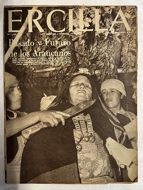 Publicación periódica. Papel impreso en disposición horizontal. En tapa texto impreso en tinta negra y blanca en parte superior, cubre el plano fotografía impresa en blanco y negro (rito mapuche ). En su interior, textos impresos en tinta blanca y negra con diferentes informaciones (noticias, reportajes, crónicas, anuncios publicitarios, etc.). Incluye múltiples fotografias, ilustraciones y tiras cómicas impresa en blanco y negro.