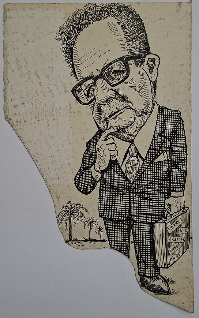 Caricatura de Allende con maletín