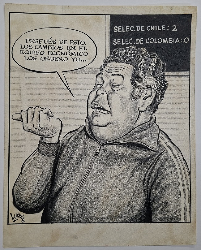 Obra visual en formato rectangular y disposición vertical. Dibujo monocromo. En el centro de la composición una figura masculina de medio cuerpo observándose las uñas de su mano derecha.