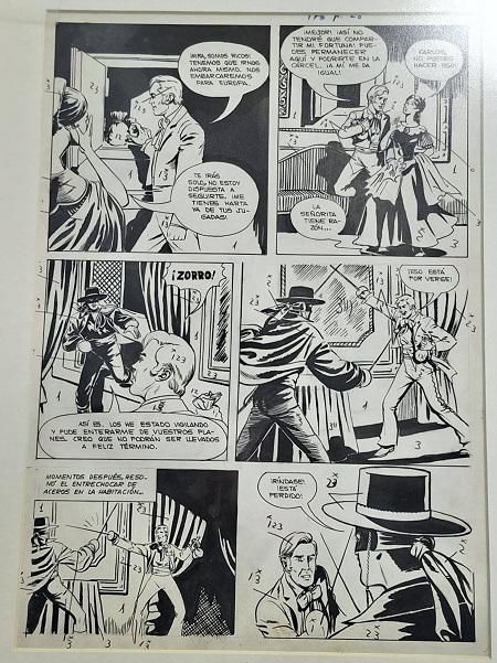 Obra visual de formato rectangular y disposición vertical. Dibujo monocromo. Está compuesto por seis viñetas protagonizadas por varias figuras masculinas y una femenina. Alrededor de algunas formas tiene diferentes números para indicar o sugerir colores.