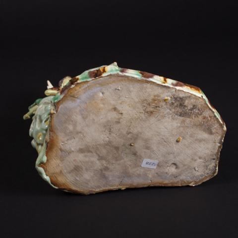 Objeto de uso decorativo. Cuerpo escultórico que representa una escena. Tiene una base semi ovalada sobre la cual están cinco figuras antropomorfas. En la parte posterior, sobre una columnata de características fitomorfas, una figura masculina alada que apunta con su dedo indice. Sobre la base, dos figuras masculinas y dos femeninas mirando hacia arriba, al centro un contenedor circular con dos cucharas.