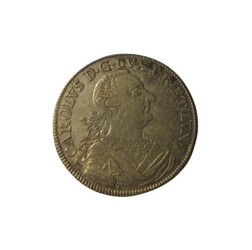 Acuñada en 1764 por la casa de Moneda de Braunschweig, Alemania, bajo el principado de Carlos I de Brunswick-Wolfenbüttel (Karl I).