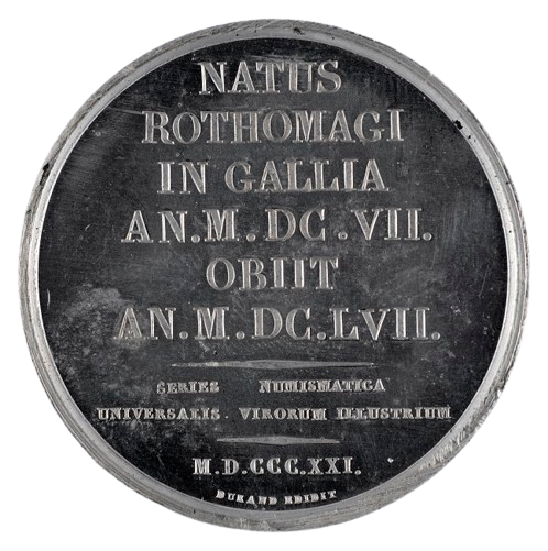Objeto metálico de forma circular. Por el anverso representa una leyenda en el campo. Por el reverso representa un busto de perfil hacia la derecha y leyenda en arco a los costados.