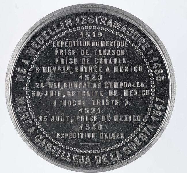 Objeto metálico de forma circular. Por el anverso representa una leyenda en el campo. Por el reverso representa un busto de perfil hacia la izquierda y leyenda en arco a los costados.