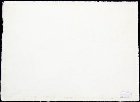 Composición en base a un construcción arquitectónica monumental. En primer plano, un muro. En segundo plano, edificio alto con cúpula. Al costado derecho, otro edificio y árboles sin follaje. Manchas con predominio de los colores marrón, naranja, verde, rojo y azul sobre fondo blanco.