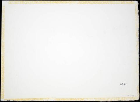 Composición en base a una locomotora con vagón con orientación hacia la izquierda, sobre riel. Manchas con predominio de los colores marrón, rojo, violeta y verde sobre fondo blanco. Algunos contornos lineales color negro.