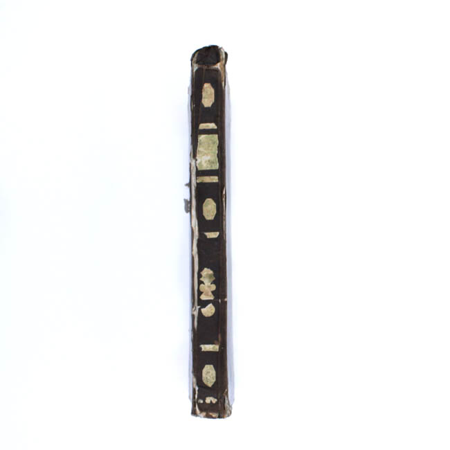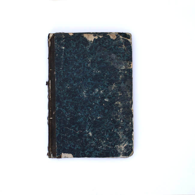Objeto usado como soporte de guiones teatrales. Encuadernación con tapas de cartón con cubierta de papel marmolado color verde turquesa y negro.; lomo de tela marrón. En su interior, cuerpo de hojas de blanco con líneas regulares horizontales y letras manuscritas color negro.
