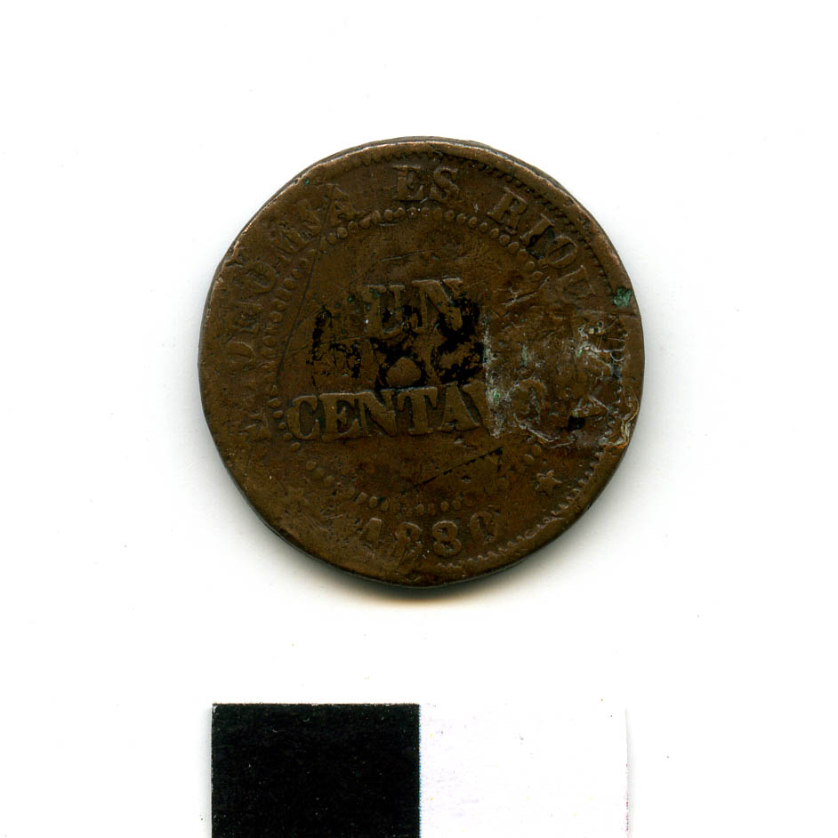 Forma circular. Fabricado en metal color marrón cobrizo. En la cara anversa presenta, una cabeza femenina de perfil circunscrita por letras. Al reverso letras inscritas en cículo, letras y números en sobre relieve.