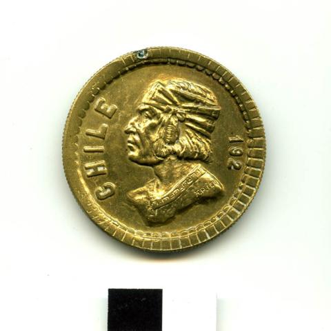 El anverso presenta, busto masculino de perfil en sobre relieve circundado por letras.