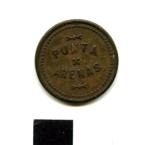 Forma circular. Fabricado en metal color bronce. Anverso y reverso presentan, letras en sobre relieve.