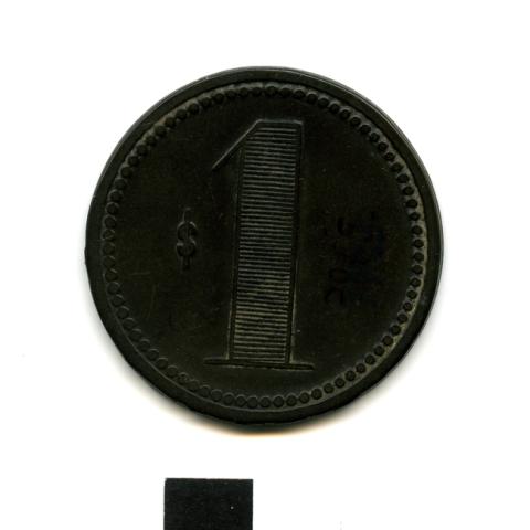El anverso presenta, letras circundadas por letras, en sobre relieve. Al reverso, número en sobre relieve.