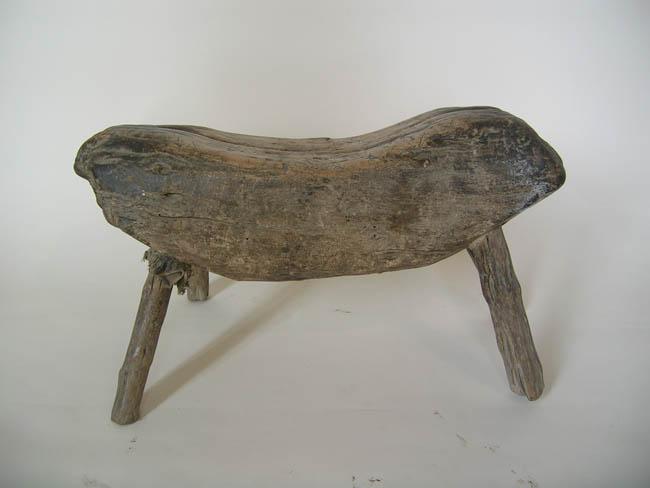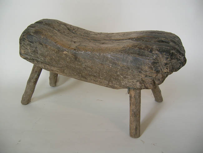 Este banco es una solución ingeniosamente simple para atender la necesidad de sentarse en el medio rural, campesino o minero. Sólo un segmento de tronco curvado ha sido suficiente para colocarle patas y convertirlo en un artefacto útil.