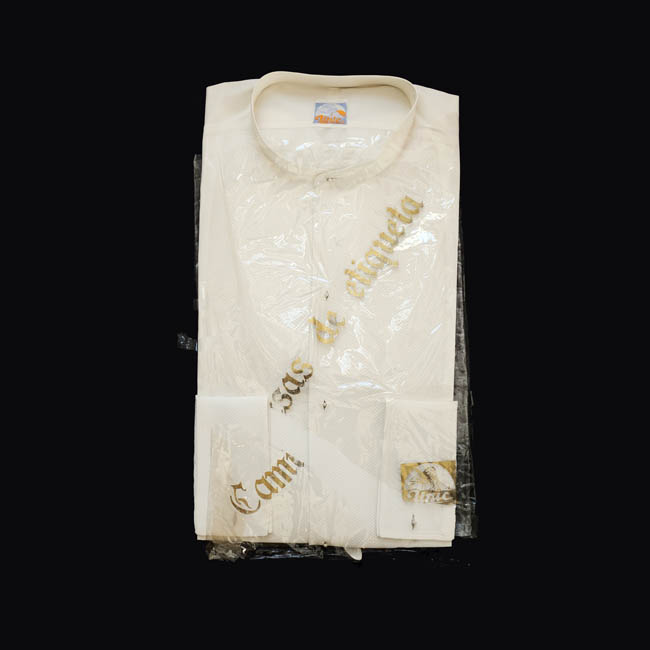 Prenda de vestir masculina de etiqueta que se usa para la parte superior del cuerpo. De algodón de color blanco, mangas largas. Cuello y puños almidonados. En el pecho tiene cinco ojales y una correa con un ojal.