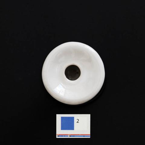 Objeto que se usa en el banco colegial para contener tinta. Compuesto por un cuerpo de forma tronco cónica hueco, y boca ancha con un orificio al centro. Fabricado en cerámica esmaltada de color blanco.