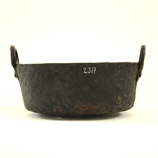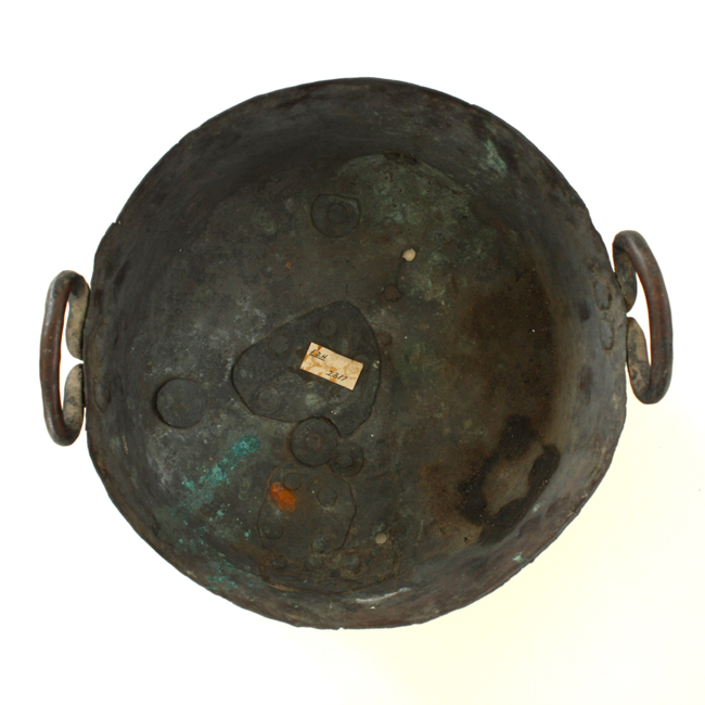 Pieza de la Colección de cobres y bronces de la Colonia, formada por Luciano Fernández B. (miembro de la Sociedad Arqueológica de La Serena), comprada por la Dirección de Bibliotecas, Archivos y Museos DIBAM en 1951 para el Museo Arqueológico de La Serena, posteriormente fue traspasada al Museo Histórico Gabriel González Videla.