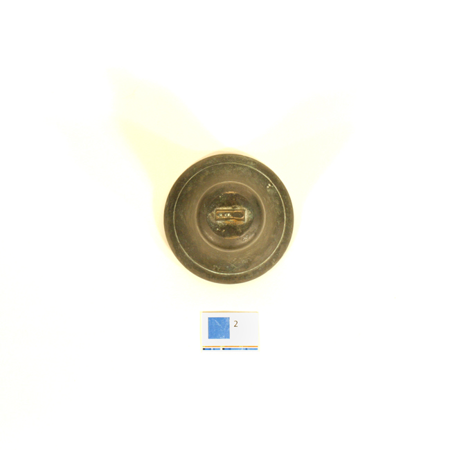 Pieza perteneciente a la colección de cobres y bronces de la época colonial, reunida por Luciano Fernández Barrios, miembro de la Sociedad Arqueológica de La Serena. Fue adquirida en 1951 por la Dirección de Bibliotecas, Archivos y Museos (DIBAM) para el Museo Arqueológico de La Serena, y posteriormente transferida al Museo Histórico Gabriel González Videla.