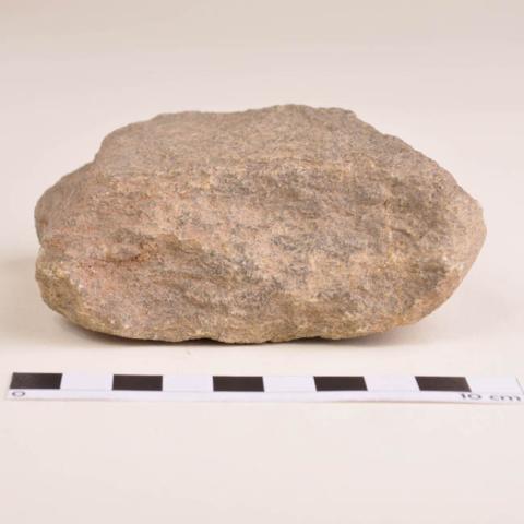 Objeto de uso probablemente ritual. Tiene forma cuadrangular de bordes irregulares y arista pronunciadas. Está fabricado en piedra tallada de color gris y tiene superficie rugosa.