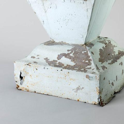 Elemento decorativo. Objeto de forma romboidal con el extremo superior resaltado y apuntado, y dos asas de orientación vertical en la parte media del cuerpo. La base es cuadrangular con el sector superior trapeziodal.