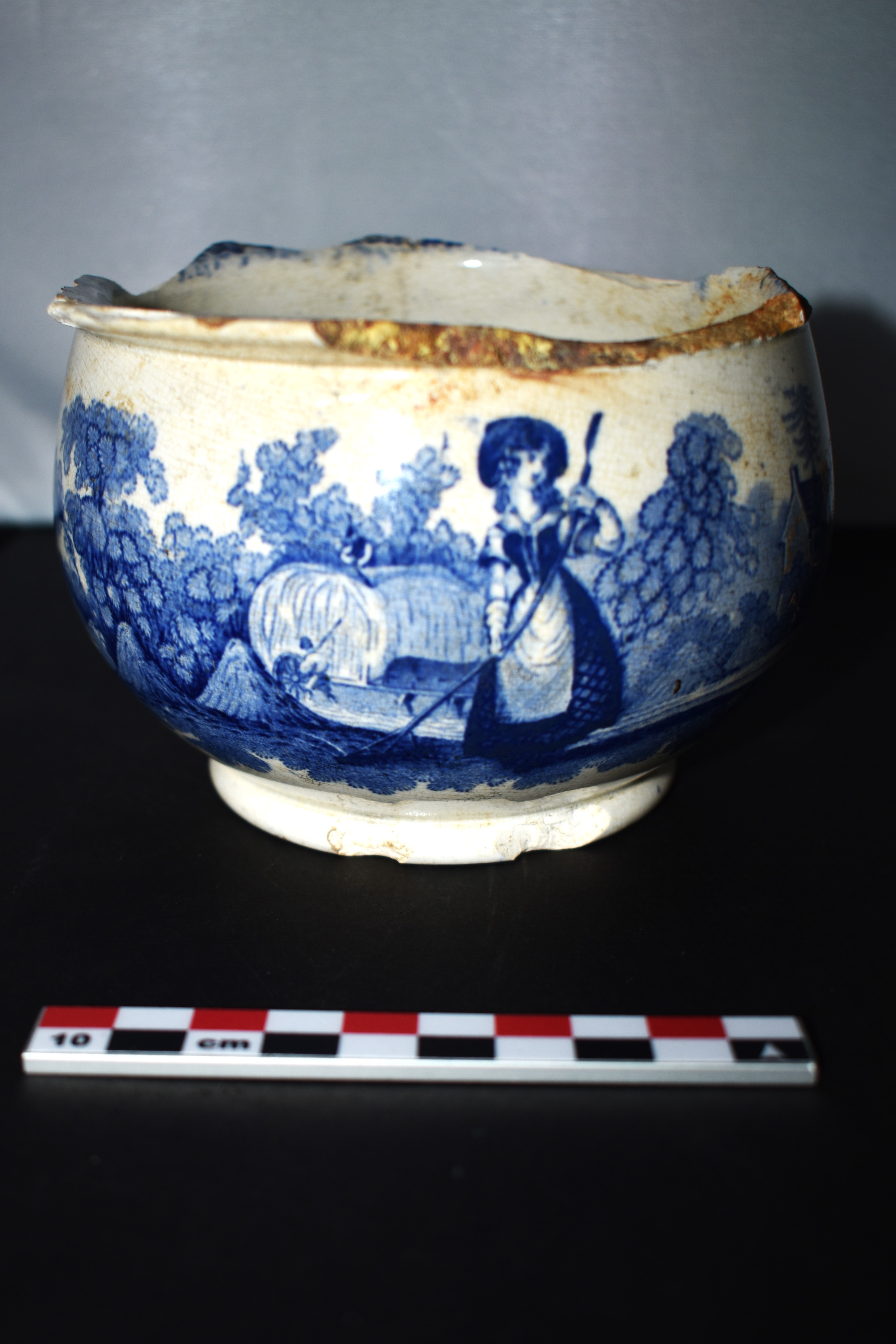Objeto encontrado en el marco del Proyecto Estacionamientos subterráneos Plaza O'higgins, de la empresa Consorcio Valparaíso SA. En el año 2017, manipulado y rescatado por la empresa Garceau Servicios Arqueológicos.