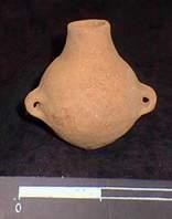 Contendor restringido de perfil compuesto. Tiene labio redondeado, cuello cilíndrico, cuerpo ovoidal y base apuntada. Posee dos asas cinta de orientación vertical en la parte media del cuerpo. Superficie alisada de color anaranjado.