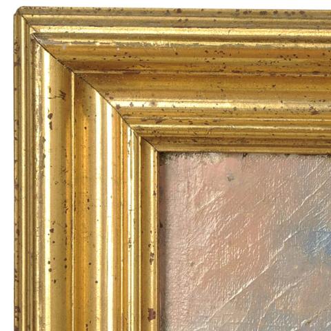 Obra bidimensional en color de formato rectangular. Composición en base a siete embarcaciones navegando con sus velas blancas izadas. En primer plano al costado izquierdo una pequeña embarcación con una vela izada y en el otro mástil una bandera triangular de color rojo en la punta. En segundo plano al centro una embarcación de mayor tamaño de dos mástiles con sus velas blancas izadas, en uno de ellos también tiene una bandera roja de forma triangular en la punta. al costado derecho dos aves volando. Distribuidas en el tercer plano cinco embarcaciones a vela.