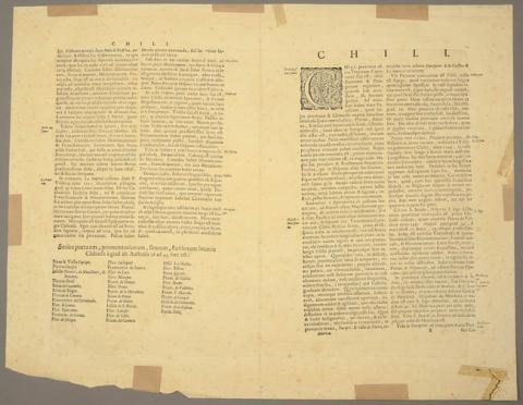 En el reverso texto organizado en cuatro columnas, en la mitad izquierda en el tercio inferior un subtitulo de dos lineas y bajo el tres columnas de texto.