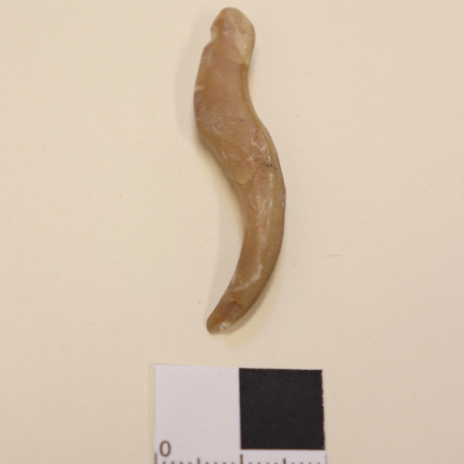 Artefacto que presenta una muesca en el extremo superior, su superficie está notoriamente pulida. Conserva gran parte del vástago.